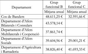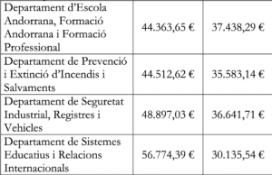 Govern ha fet públic el salari que cobraran de mitjana els funcionaris, segons cada departament i categoria, arran de la pregunta formulada Pol Bartolomé Areny, conseller general del Grup Parlamentari de Concòrdia. La xifra correspon a la mitjana anual i per saber la mitjana mensual cal dividir el sou per dotze.