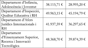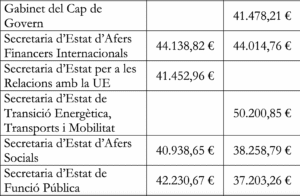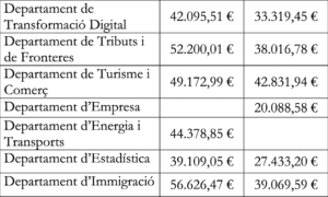 Els sous més alts es troben departaments com a Policia, Immigració, Registres jurídics i econòmics. L’executiu ha fet públic el llistat de departament per departament pe que fa als grups B (intermedi) i C (baix). En aquest llistat no surten els sous corresponents al grup A que recull als funcionaris d’alt rang.