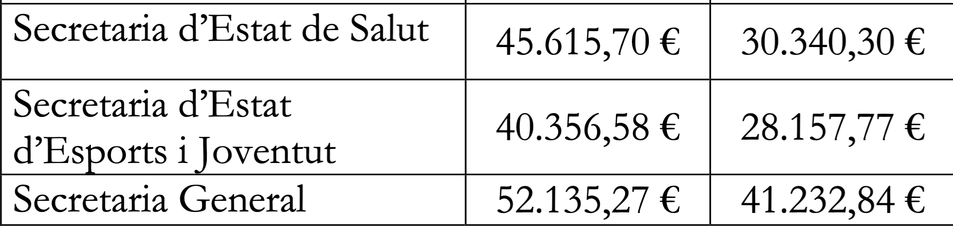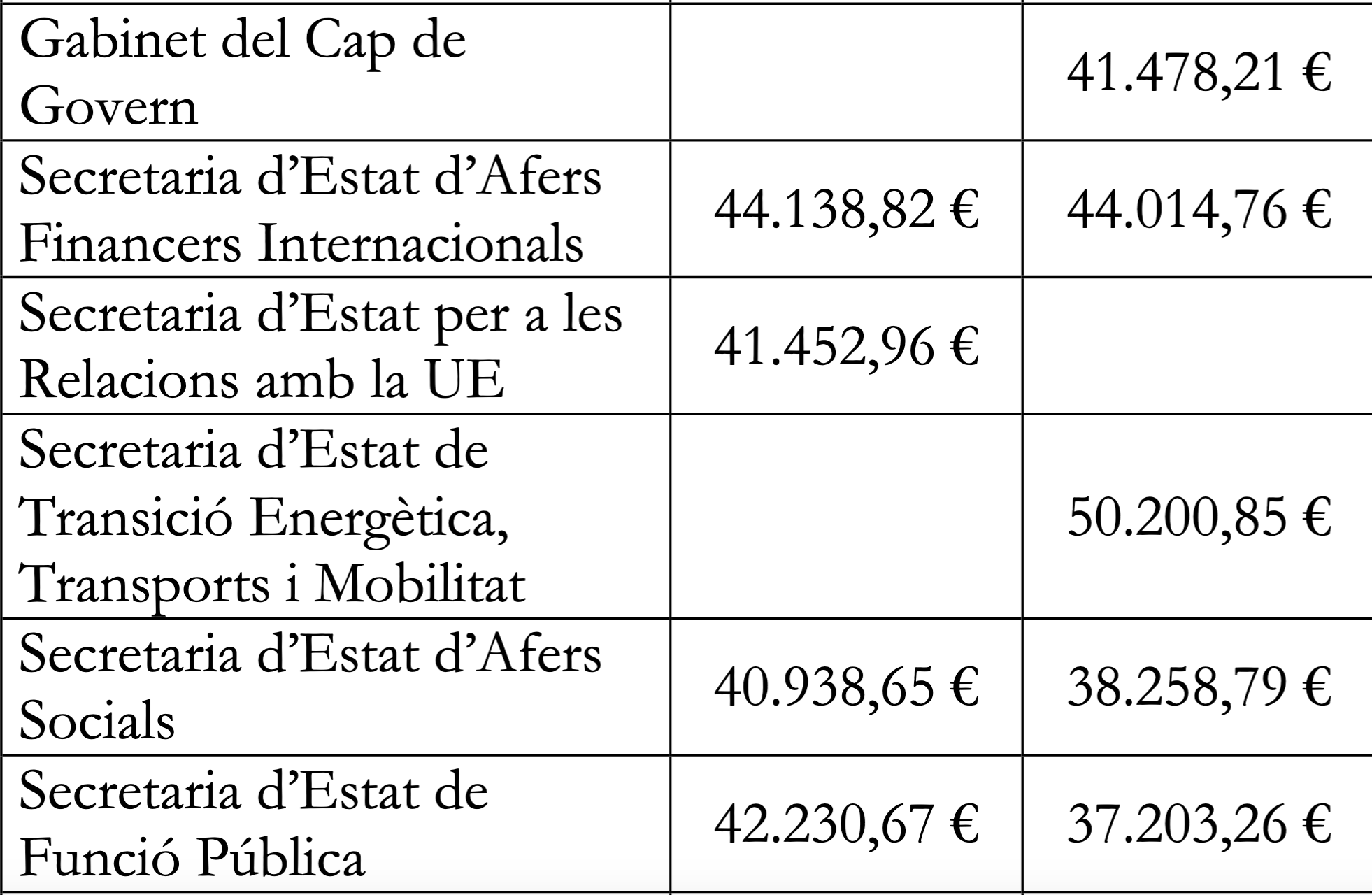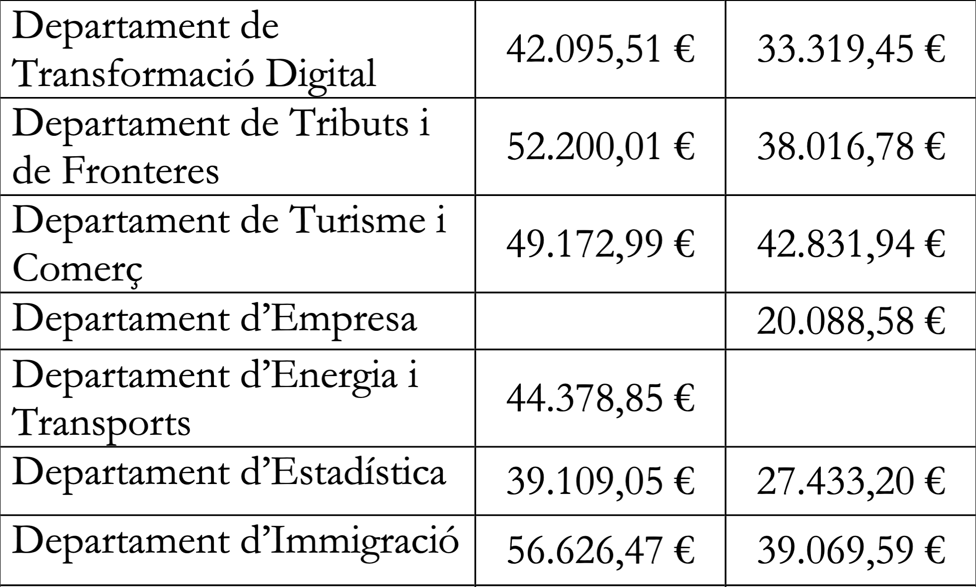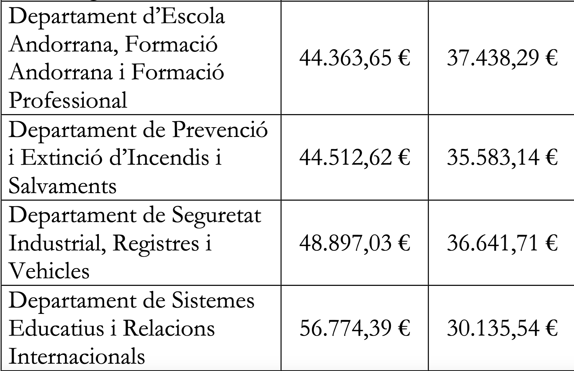 Els sous més alts es troben departaments com a Policia, Immigració, Registres jurídics i econòmics. L’executiu ha fet públic el llistat de departament per departament pe que fa als grups B (intermedi) i C (baix). En aquest llistat no surten els sous corresponents al grup A que recull als funcionaris d’alt rang.