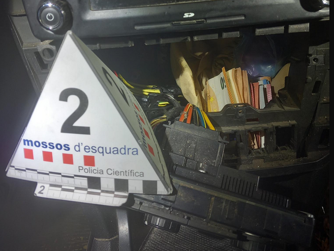 Droga amagada darrere del reproductor de música del cotxe (Foto: Mossos d'Esquadra)