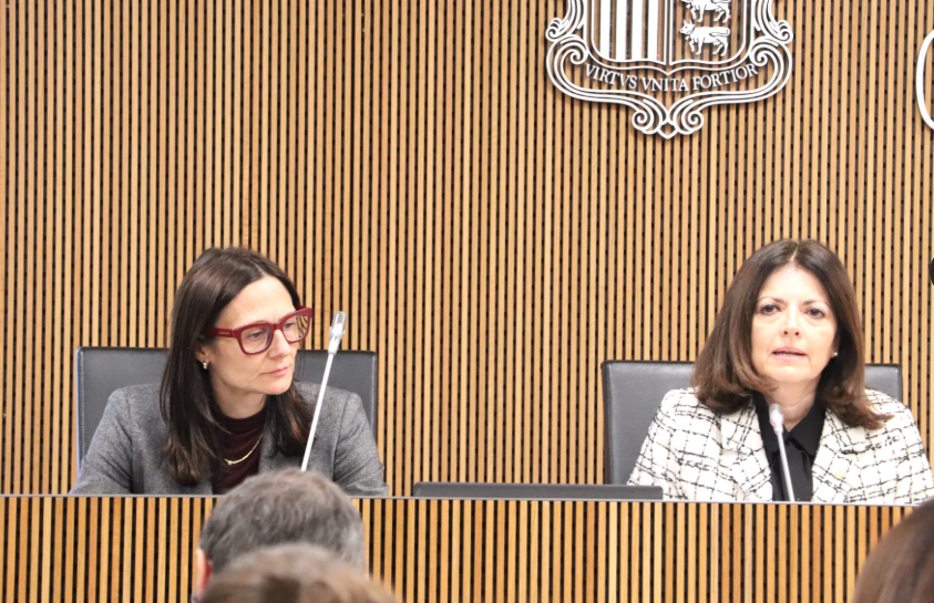 Les ministres Imma Tor i Ester Molné durant la compareixença al Consell General (Foto: Demòcrates).