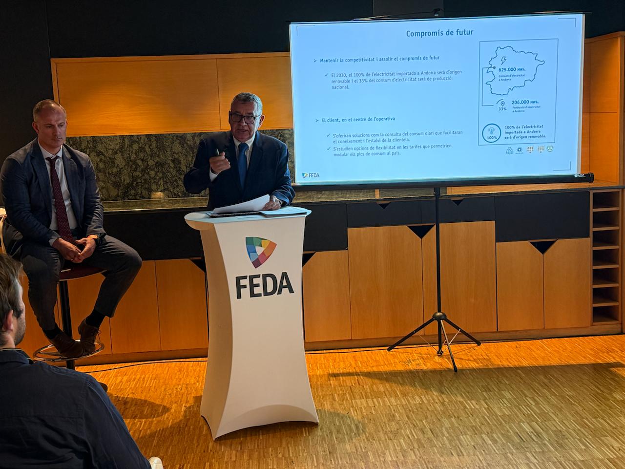 El director de FEDA, Albert Moles, ha explicat que hi ha un augment important del consum aquest any perquè hi ha hagut més fred, les estacions engeguen la maquinària i cada cop hi ha més calefacció elèctrica que arriba a un 15% del total. En quinze dies s’ha notat un augment d’entre un 30 i un 40% del consum respecte l’any passat. Moles ha manifestat que hi ha un triple compromís. Amb l’estabilitat de preus, reduir l’impacte ambiental i anar cap a energies renovables. El cost de la factura de la factura de la llum a Andorra és un 40% inferior a la dels països veïns, segons es recull en la presentació del balanç de la companyia elèctrica.