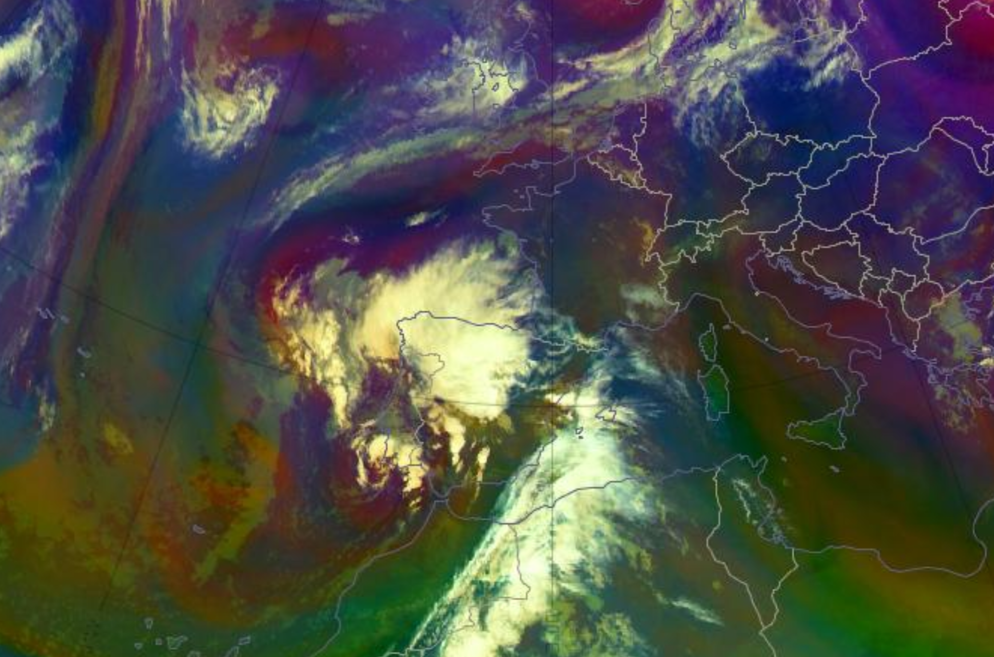 Mapa que mostra les masses d'aire sobre la península Ibèrica (Foto: Meteo France)