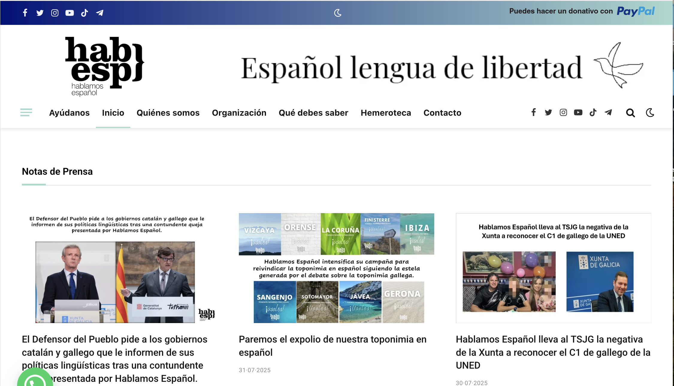 Imatge de la pàgina de l'entitat Hablamos Español d'Hispanohablantes.es. Foto: Google.