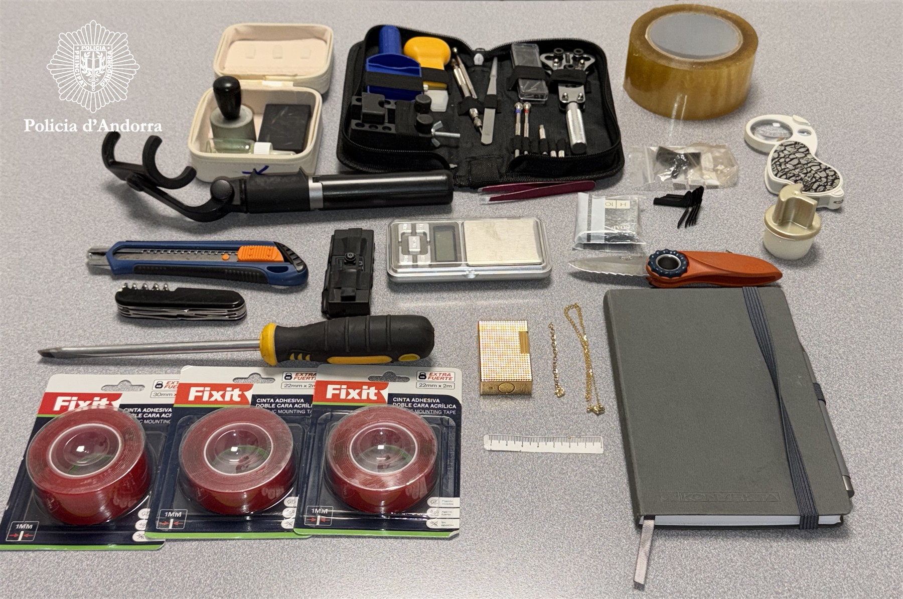 Els investigadors també van localitzar els dos cotxes amb què els presumptes delinqüents s’havien desplaçat al país i, en un d’ells, van trobar nombrosos estris que aquesta mena de grups criminals fan servir per cometre furts, desmuntar rellotges i comprovar, fins i tot, l’autenticitat i puresa de l’or.